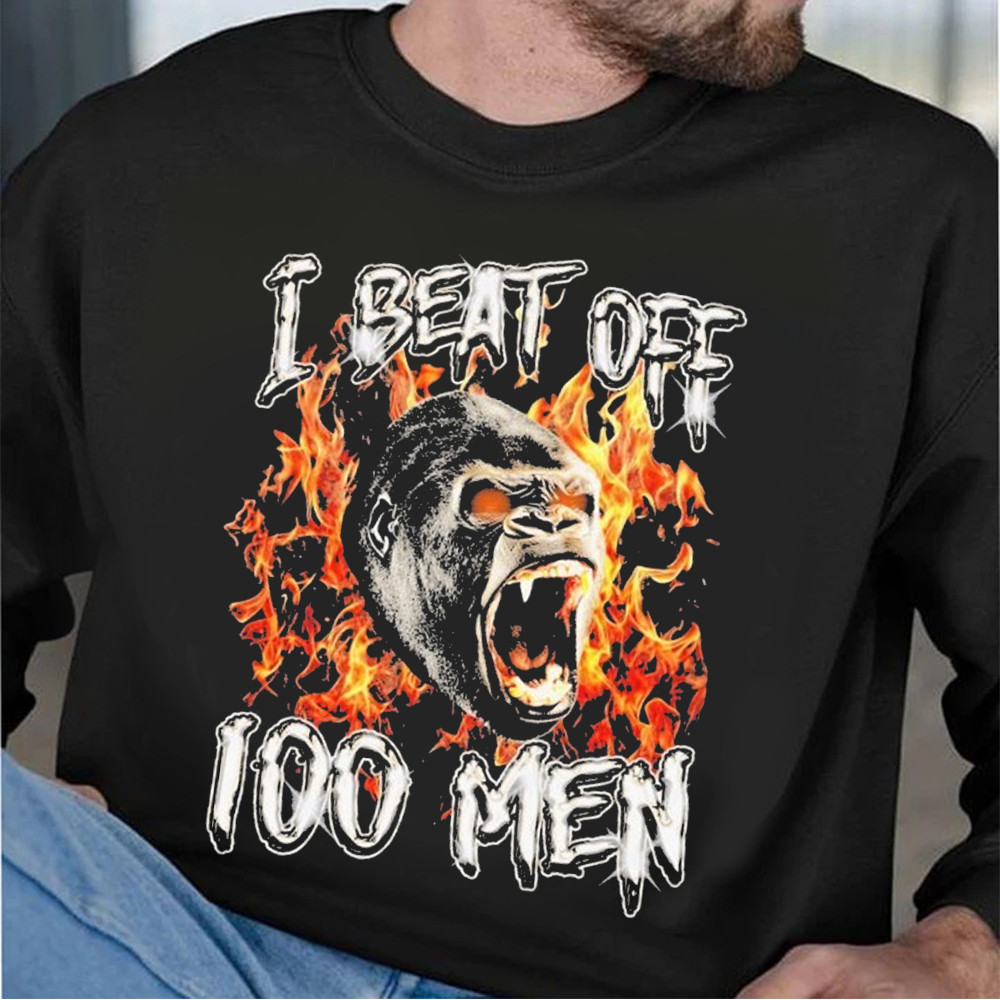 100 Men Vs. 1 Silverback Gorilla In Hand to Hand Combat White Sweatshirt Gift For Men