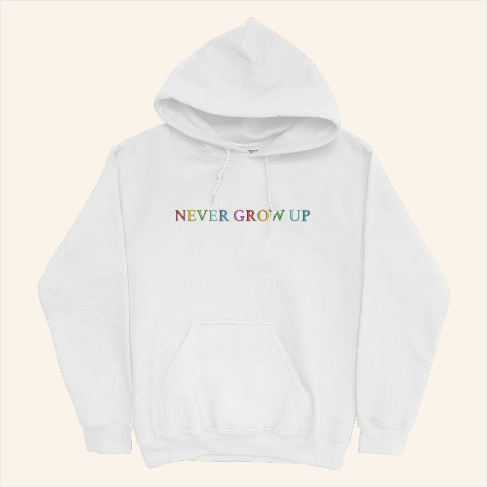 Never Grow Up Embroidered Black Hoodie Baylen Levine Merch Birthday Gifts For Best Friend
